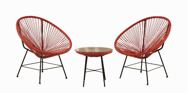 აივნის მაგიდა + 2 ჩასაჯდომი სკამით წითელი TF56-RED