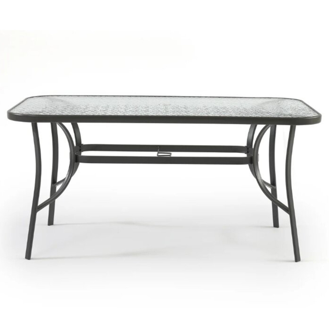 ნაკრებში შედის 1 მაგიდა ქოლგის სამაგრით ზომით : 150*90*70