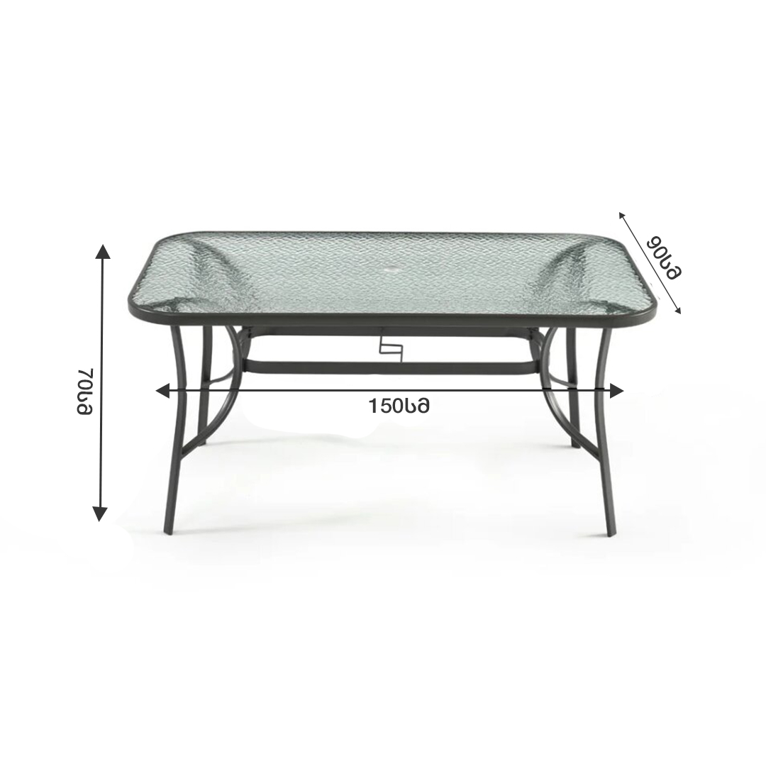 - ნაწრთობი მინის მაგიდა, ქოლგის სამაგრითა და მეტალის კარკასით